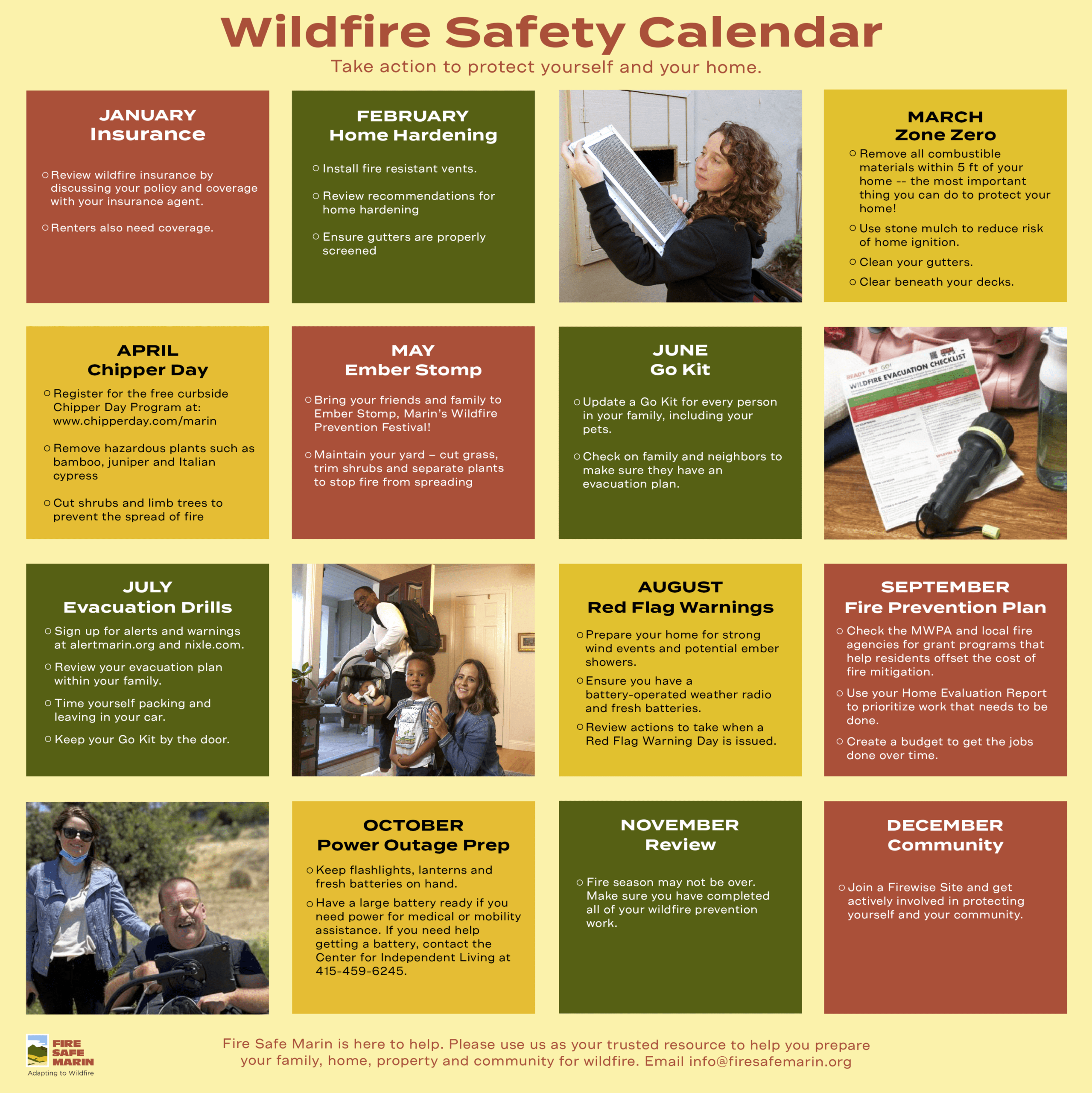 Being wildfire-adaptive means being prepared. By doing a little bit of work each month, you can keep your family and home safe.