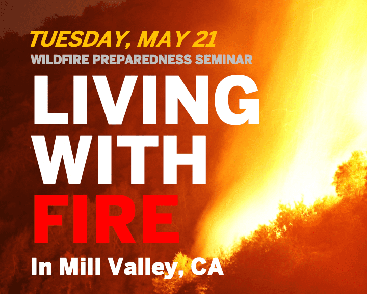 Join us at the Muir Woods Park Community Association Clubhouse for a FREE 2-hour seminar on wildfire preparedness for Mill Valley and Throckmorton Ridge residents (all Marin residents are welcome, however each session may include material specific to the location hosting the seminar).