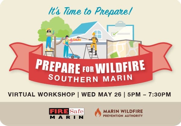 Prepare yourself for wildfire! A series of virtual community workshops will cover a variety of topics including wildfire science, defensible space, home hardening basics, community preparedness, and personal preparedness and evacuations. All workshops will include discussion, Q&A, and the same topics, but each will also feature a guest speaker that can answer questions specific to each geographic service area of Marin County. These workshops will teach actionable skills that residents can use right away.