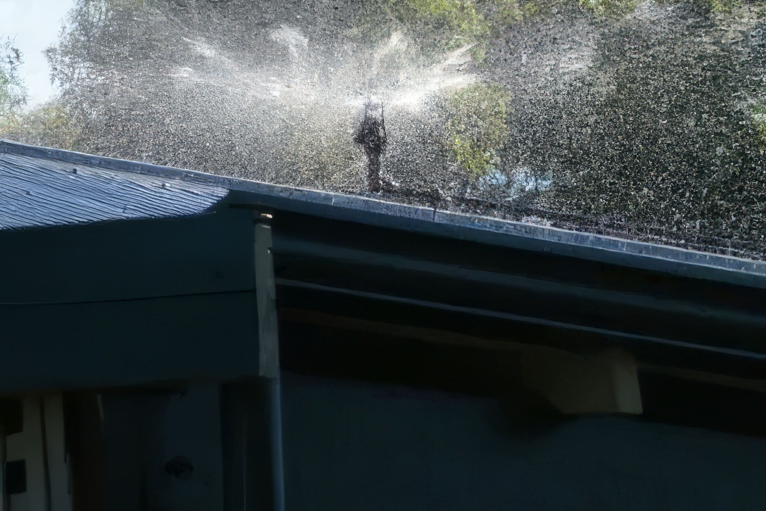- On the property, in which case the sprinklers are directed at the home from multiple locations surrounding it. Ember ignition of combustibles located on or near the home can result in a radiant and/or flame contact exposure (Photo 2). Water should reach all vulnerable areas for the system to have maximum effect both on and near the home.