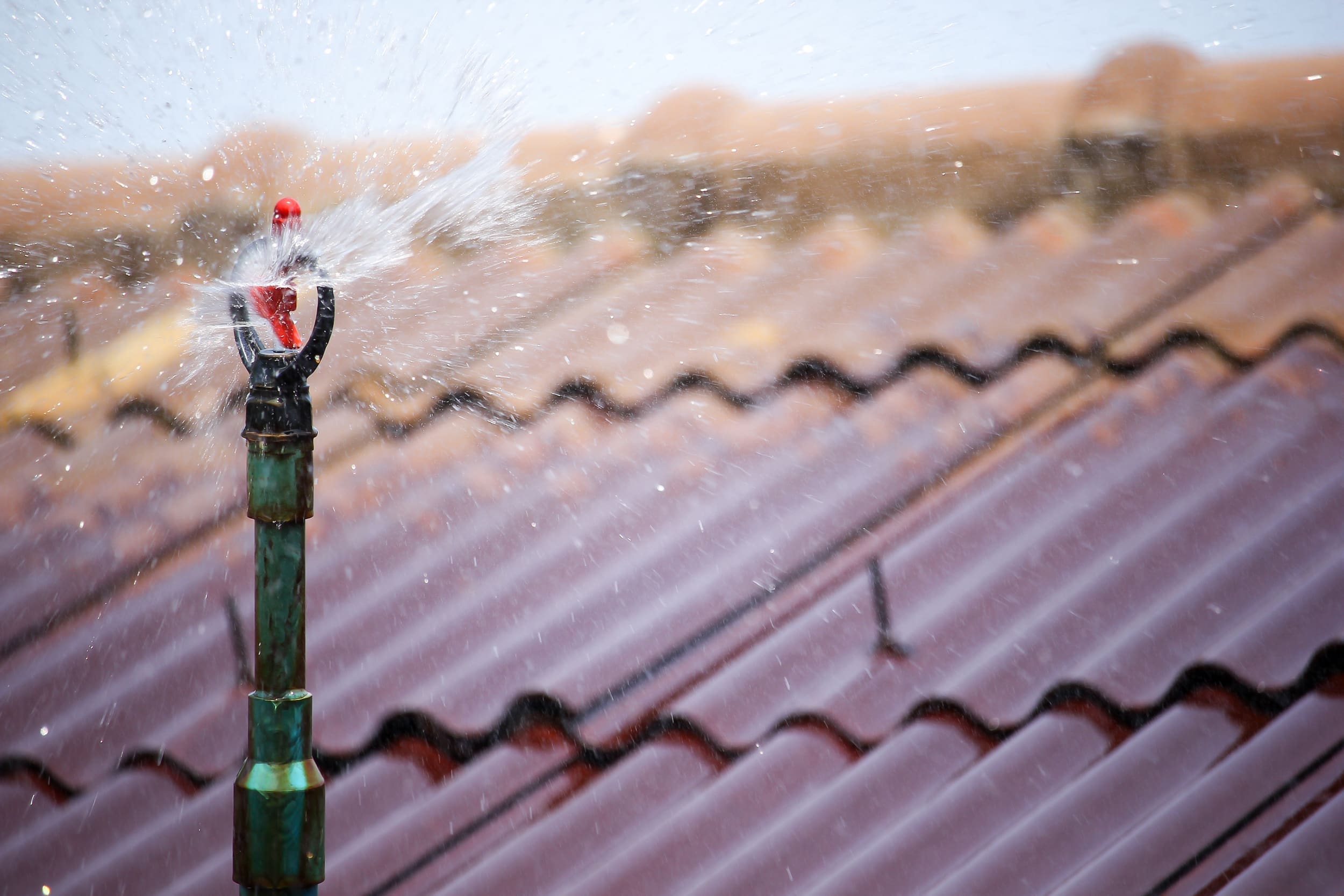 The function of an exterior sprinkler system is to minimize the opportunity for ignition by wetting the home and surrounding property. Sprinkler systems should be able to protect a home against the three basic wildfire exposures: wind-blown embers, radiant heat, and direct flame contact.