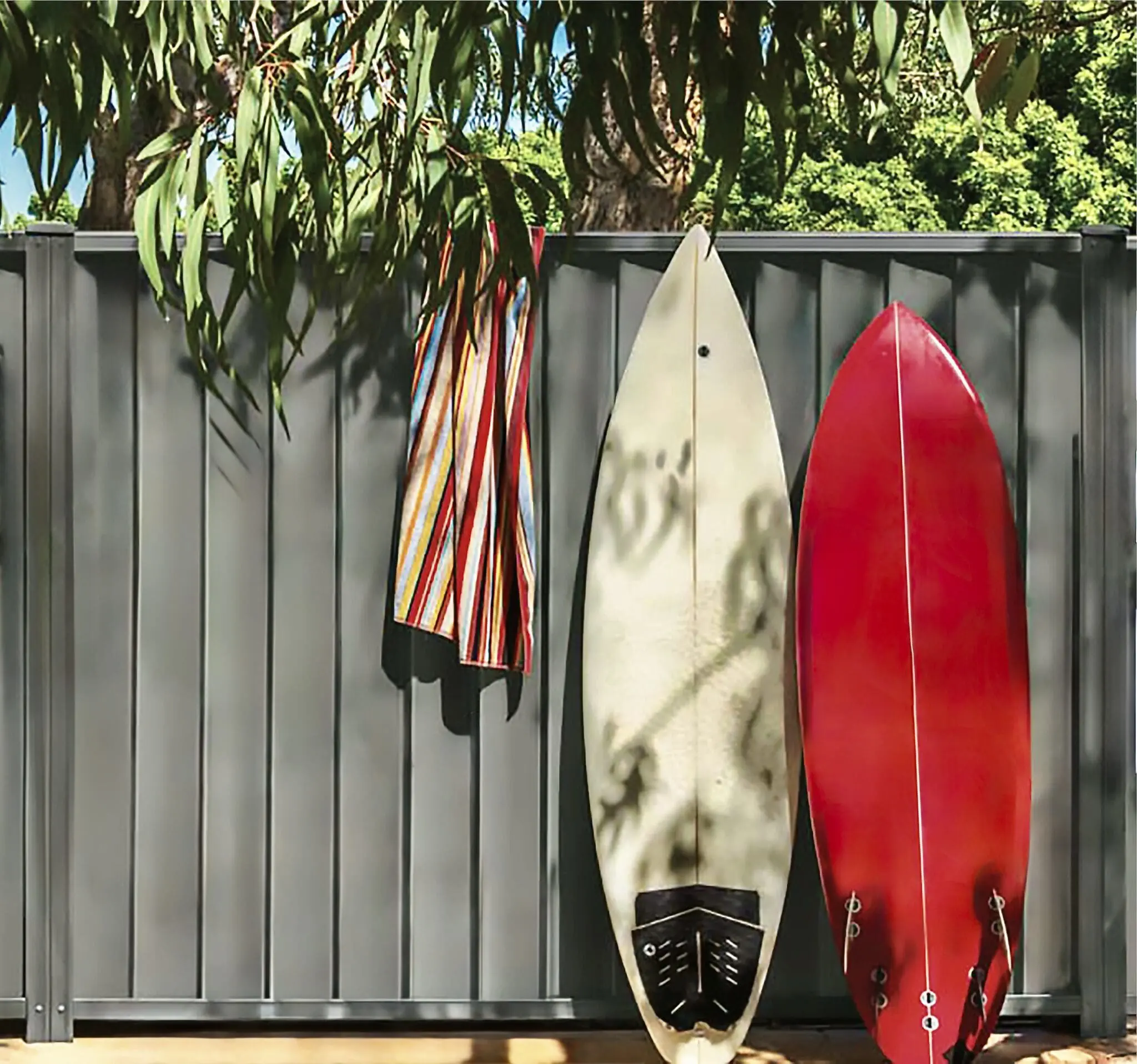 When neighboring buildings are within 20 feet of each other, using steel fencing for the perimeter area can serve as a radiant barrier, providing added protection should a neighboring building ignite and burn. Research in Australia demonstrated the ability of panelized steel fencing to resist radiant heat exposure. There are many options and styles available including wood grain look and vibrant colors.